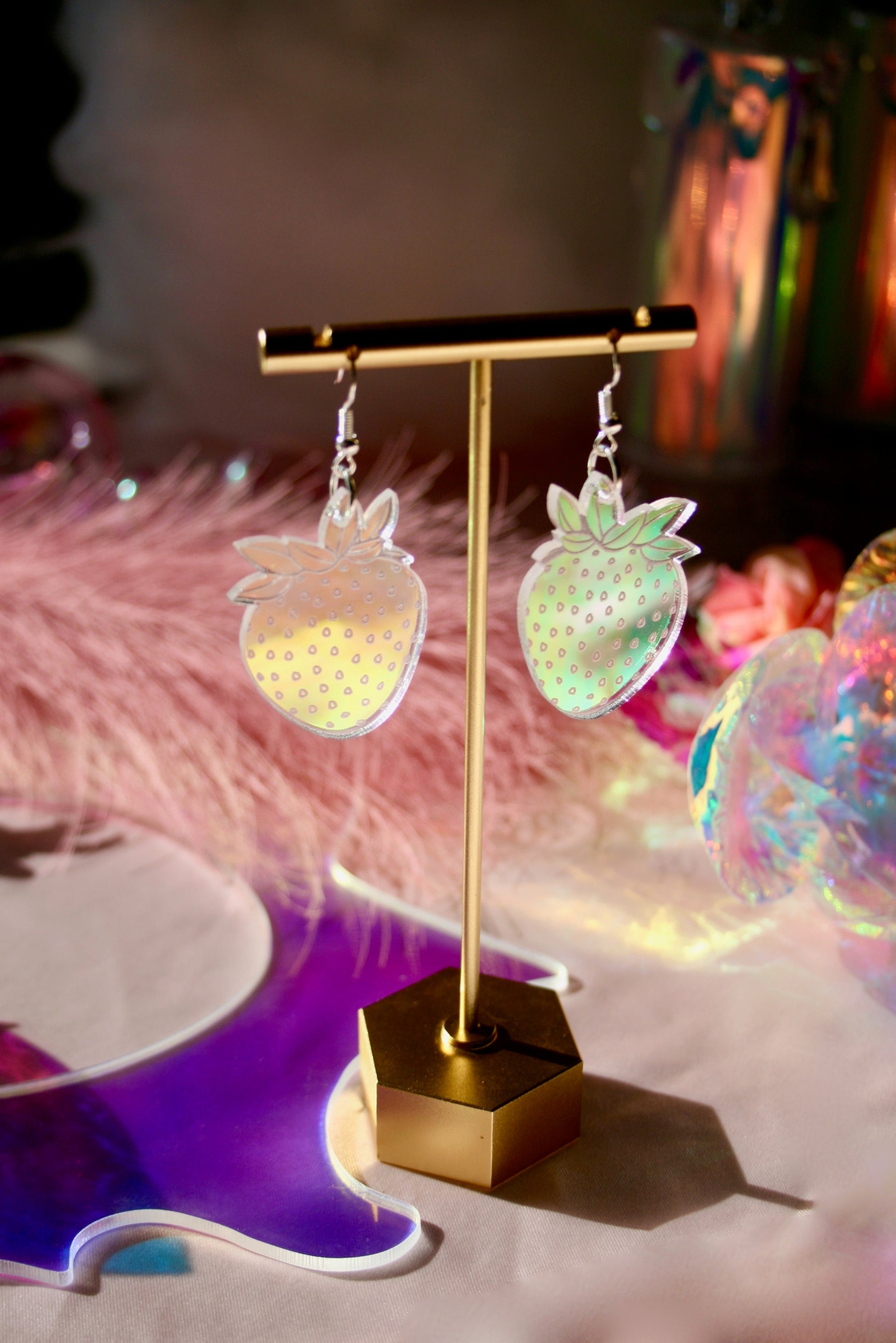 Wholesale- Strawberry Earrings- Iridescent Reflective Lightweight Witchy Fruit Summer Garden Juicy Kawaii